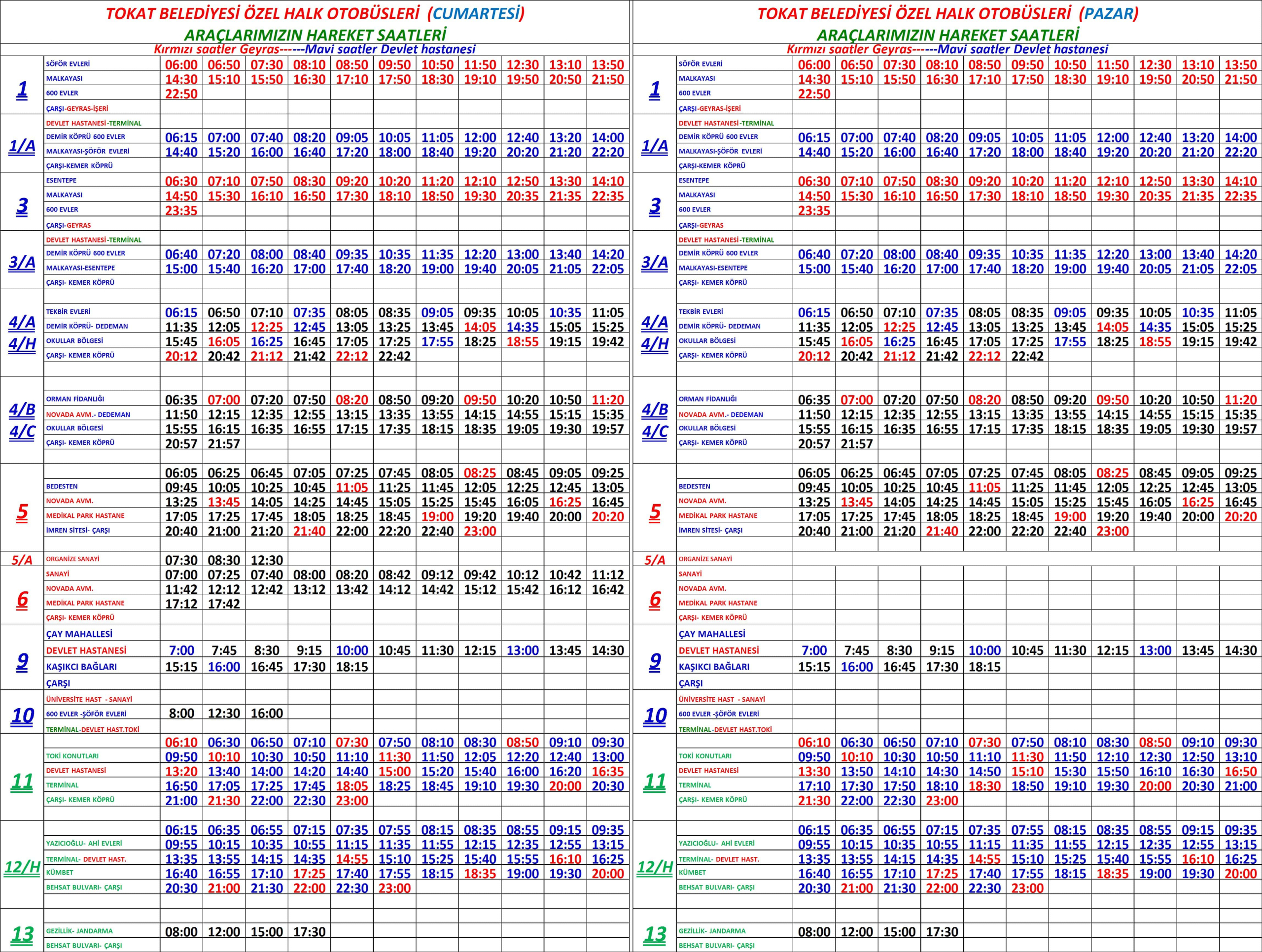 Tokat Belediyesi’nin mobil uygulaması ve web sitesinden güncel otobüs saatlerine ulaşabilirsiniz.